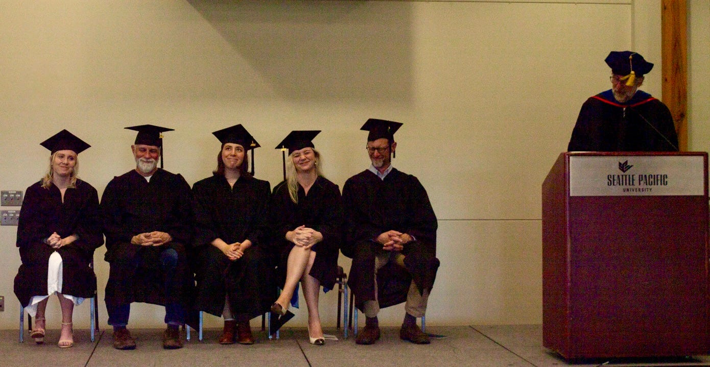 Last month I crossed a small stage at Seattle Pacific University to shake hands with Scott Cairns, receive a hood from Mischa Willet, and officially graduate with a Master of Fine Arts in Creative Writing. It is now time to (slightly) broaden the circle of friends I’m leaning on to help me continue to grow as a writer.